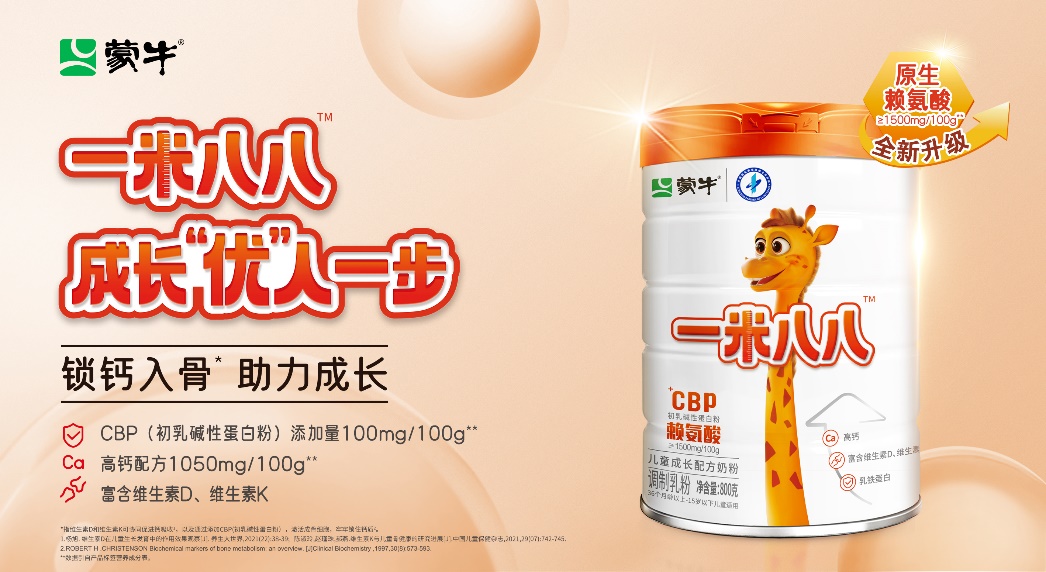 為了滿足兒童在不同成長階段的需求,蒙牛一米八八首創(chuàng)添加初乳堿性蛋白(CBP),鎖鈣入骨,志在為中國兒童骨骼成長發(fā)育提供專業(yè)的解決方案。上半年,與中國學(xué)生營養(yǎng)與健康促進(jìn)會合作科研實證,蒙牛一米八八奶粉針對學(xué)齡前兒童干預(yù)組在60天內(nèi)身高增長明顯,相較于對照組,身高差異高達(dá)30%。憑借強(qiáng)大的科研優(yōu)勢及產(chǎn)品品質(zhì),蒙牛一米八八榮獲世界乳品創(chuàng)新獎的兒童乳制品優(yōu)秀獎,夯實了兒童骨骼發(fā)育營養(yǎng)領(lǐng)域的權(quán)威地位。