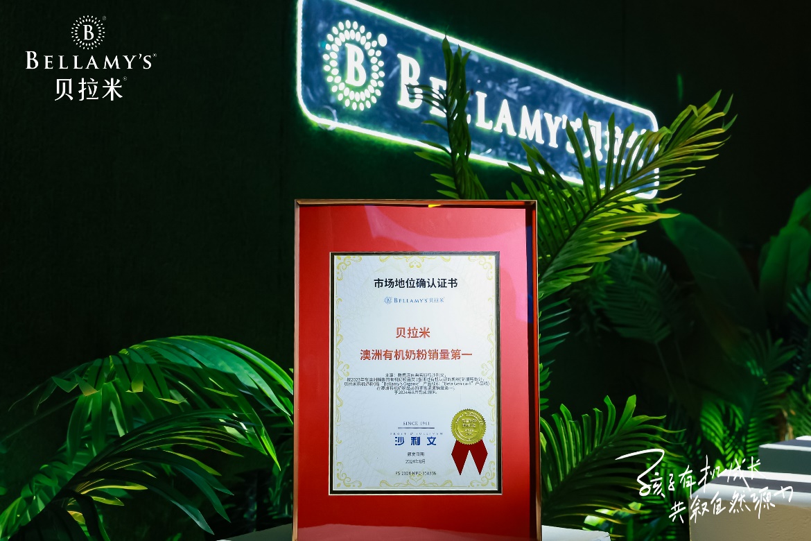 8月,貝拉米獲得全球增長咨詢公司弗若斯特沙利文授予的“貝拉米,澳洲有機(jī)奶粉銷量第一”市場地位確認(rèn)證書,有機(jī)奶粉領(lǐng)導(dǎo)品牌的強(qiáng)勁實力再次得以彰顯。