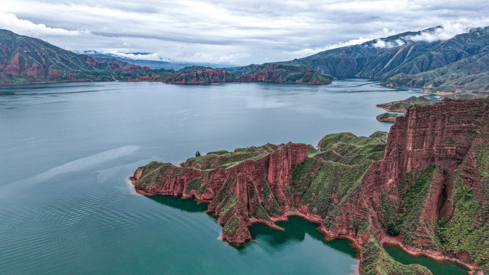 紅色丹霞巖壁連綿起伏,陡峭矗立,碧綠黃河水蜿蜒穿行在峽谷間。兩岸林木蔥郁,山間云霧時(shí)聚時(shí)散,一步一景,渾然天成。