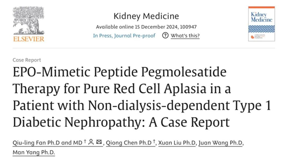 近日,美國腎臟基金會(NKF)官方期刊《腎臟醫(yī)學》(Kidney Medicine)發(fā)表了由上海交通大學醫(yī)學院附屬第一人民醫(yī)院腎內(nèi)科范秋靈教授主導研究的一篇有關(guān)促紅細胞生成素(EPO)模擬肽——培莫沙肽(商品名:圣羅萊)的病例報告。該報告首次顯示了培莫沙肽能夠有效治療EPO誘導的純紅細胞再生障礙性貧血(PRCA)患者,且安全性良好,為這種罕見但嚴重的并發(fā)癥提供了一種頗具前景的創(chuàng)新解決方案。