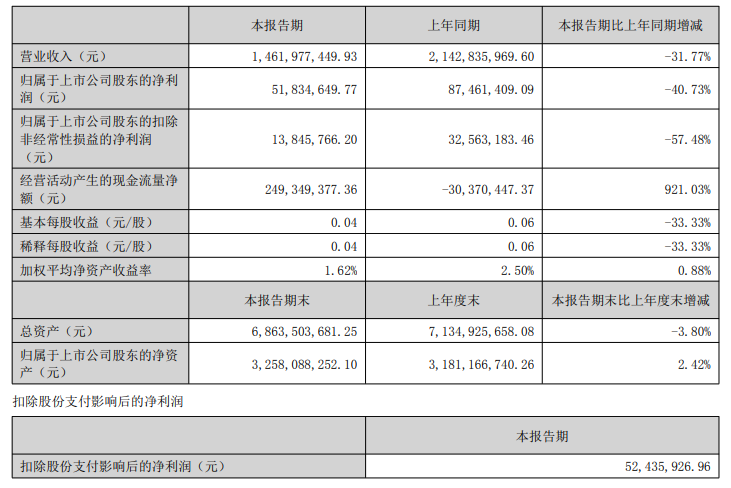 中國經(jīng)濟(jì)網(wǎng)北京8月20日訊(記者 郭文培)8月20日,貴州百靈披露2025年半年度報告。報告期內(nèi),公司實現(xiàn)營業(yè)收入14.62億元,同比下降31.77%;歸屬于上市公司股東的凈利潤為0.52億元,同比下降40.73%。