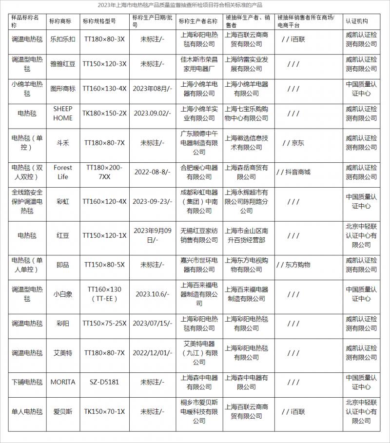本次監(jiān)督抽查依據(jù)為SHSSXZ0065-2023《電熱毯上海市產(chǎn)品質(zhì)量監(jiān)督抽查實施細(xì)則》組織實施。