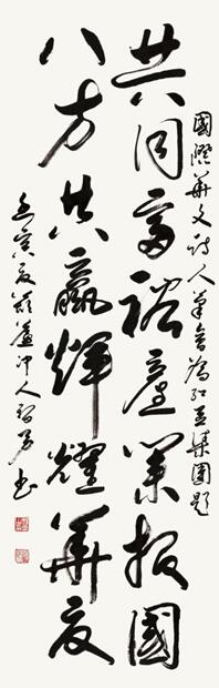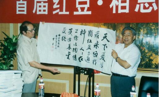 在《七夕,紅豆最相思的詩(shī)意探訪》論壇主題引導(dǎo)下,詩(shī)人們暢談紅豆愛情詩(shī)的淵源,以及對(duì)中國(guó)新詩(shī)的助推、發(fā)展的歷史作用,使中華文化傳統(tǒng)薪火相傳,在我們這一代詩(shī)人手里發(fā)揚(yáng)光大,繪出獨(dú)特的、現(xiàn)代人審美的愛情詩(shī)篇。會(huì)上,北京電視臺(tái)節(jié)目主持人、詩(shī)人黃殿琴朗誦了張?jiān)妱?、桂興華、綠島寫的紅豆愛情詩(shī)歌,并展示了多位詩(shī)人等為紅豆集團(tuán)寫的多幅書法,表達(dá)了友誼深情?!肮餐辉.a(chǎn)業(yè)報(bào)國(guó) 八方共贏輝煌華夏”是詩(shī)人黎勇先生寫給紅豆集團(tuán)的書法 ,國(guó)際華文詩(shī)人筆會(huì)主席張?jiān)妱懡o紅豆集團(tuán)書法為“紅豆最相思”等。
