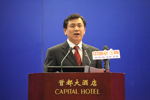 由中國道路交通安全協(xié)會、中國汽車技術研究中心和中國經(jīng)濟網(wǎng)共同主辦的“2013中國道路交通安全論壇”于8月29日在北京首都大酒店舉行。圖為交通運輸部副部長馮正霖致辭。中國經(jīng)濟網(wǎng) 裴小閣 攝影
