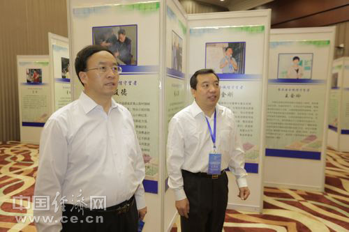 2013年全國食品安全宣傳周啟動儀式暨第五屆中國食品安全論壇6月17日在北京舉辦,今年主題為“社會共治 同心攜手維護食品安全”。圖為蘭州市市長袁占亭參觀食品安全“誠信守望者”展覽。中國經(jīng)濟網(wǎng) 王耀峰/攝