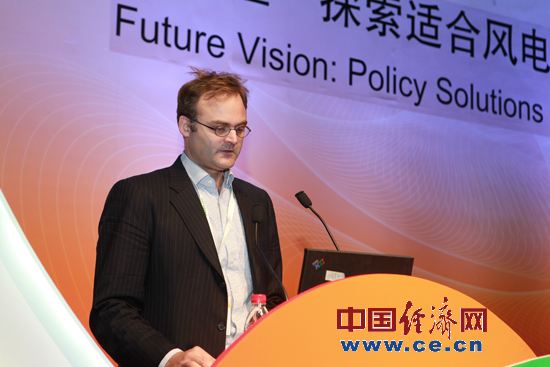 所謂的滲透率和普及率,在全國來看確實(shí)很低,但我們看一下內(nèi)蒙古等地區(qū),在國際標(biāo)準(zhǔn)來看它的滲透率也是很高的,去年內(nèi)蒙古的風(fēng)電滲透率可以與德國相比,風(fēng)能占總裝機(jī)容量的16%。在中國的管理問題更加突出,因?yàn)槔碚撋现v這樣地方的風(fēng)力資源更有優(yōu)勢,在發(fā)展風(fēng)電的時(shí)候要更好地統(tǒng)籌考慮。在內(nèi)蒙古火電站和風(fēng)場怎樣進(jìn)行統(tǒng)籌考慮,像德國這樣更好的并網(wǎng)。因?yàn)榈聡诓⒕W(wǎng)和利用風(fēng)能方面有更多的經(jīng)驗(yàn),德國的一些工作已經(jīng)走在了中國前面,有些事情在德國已經(jīng)順理成章,在中國還沒有這樣。我們發(fā)現(xiàn)鑒于中國已經(jīng)進(jìn)行的開發(fā)活動(dòng),像內(nèi)蒙古這樣風(fēng)力資源充沛的地方,在近期可能會(huì)成為世界上風(fēng)能普及率最高的地方之一,成為全世界的佼佼者。在內(nèi)蒙古這樣的地方,占中國總體風(fēng)力市場的35%左右。在這樣的地區(qū)市場上,風(fēng)力資源非常充沛,與風(fēng)能相抗的只能是煤電。因此,我們面臨整合的問題。也就是怎樣將風(fēng)電和煤電進(jìn)行整合。一般來說煤電占500兆瓦,風(fēng)電也需要有類似的裝置,必須保證24小時(shí)都能夠利用風(fēng)能,這樣就可以保證風(fēng)電的供應(yīng)。如果有400兆瓦的風(fēng)機(jī)容量得到安裝,并進(jìn)行有效運(yùn)作,確實(shí)可以解決相關(guān)問題。