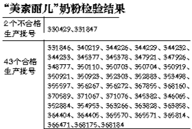 據(jù)介紹,江蘇共封存涉嫌篡標“美素麗兒”奶粉9841.3公斤,送檢207批次樣品。檢測結果是205個批次合格,涉及43個生產批號;2個批次不合格,涉及2個生產批號,主要是蛋白質含量未達標。