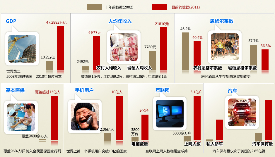 過去五年的工作和十年的基本總結(jié)胡錦濤說,十七大以來的五年,是我們在中國特色社會主義道路上奮勇前進的五年,是我們經(jīng)受住各種困難和風(fēng)險考驗